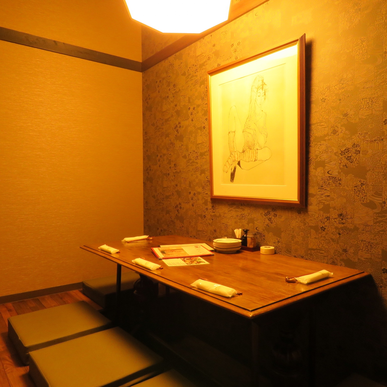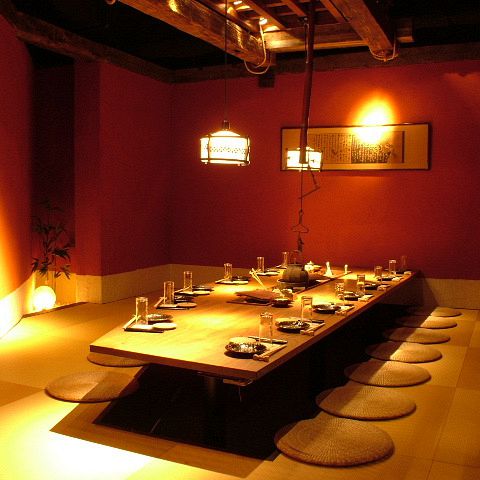 最大60名様まで利用できる広々とした掘りごたつ個室は、団体宴会でもゆったり過ごせる安心の空間です。